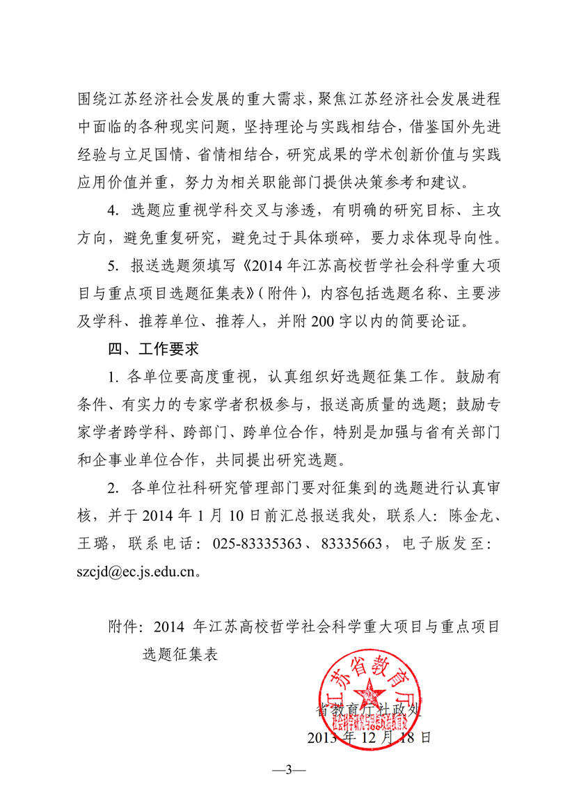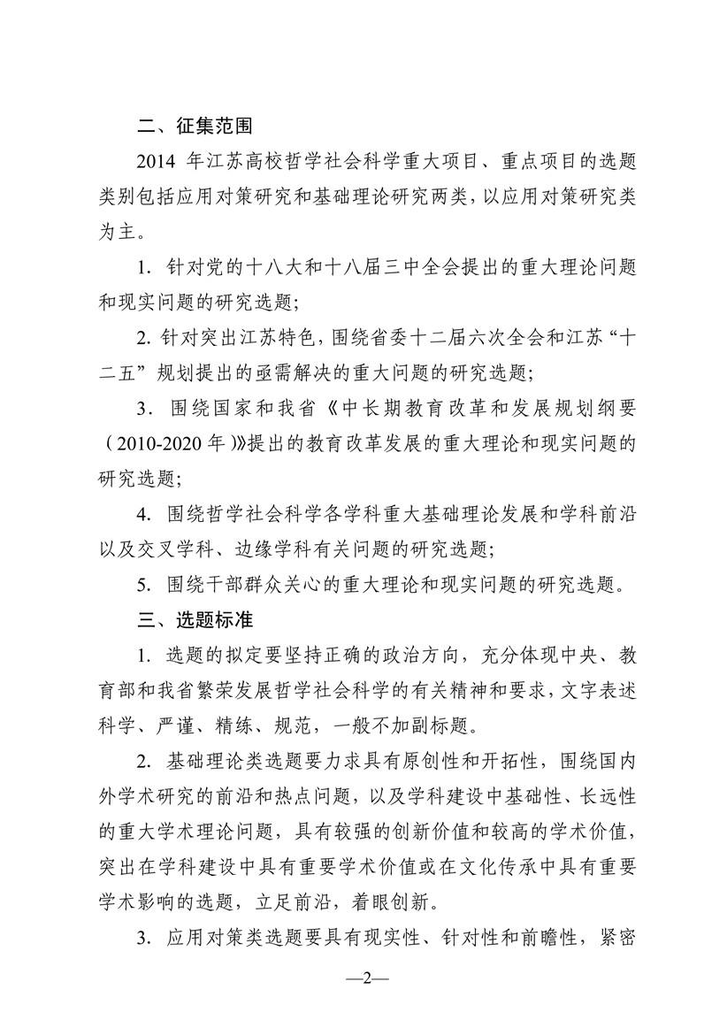 关于征集2014年江苏省高校哲学社会科学重大项目与重点项目选题的通知