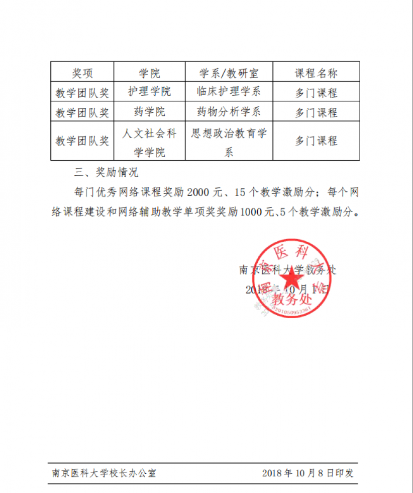 南医大教 [2018] 71号 关于公布2017-2018学年第二学期网络课程评优结果的通知