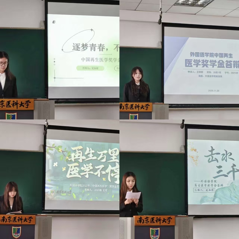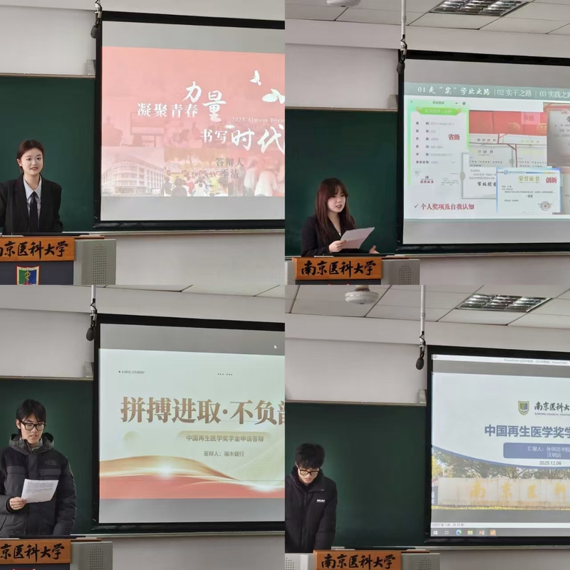 答辩现场气氛热烈,外院学子依次登台,围绕思想表现、学业成绩、专业技能、实践经历、创新成果及未来规划等方面进行全面展示。他们或分享学习心得,或讲述社会实践中的责任担当,或阐述在第二课堂中的能力提升,言语间满是对专业的热爱与对未来的笃定,赢得了评委们的一致认可与现场观众的阵阵掌声。评审团本着客观公正的原则,从思想觉悟、学业水平、实践能力、创新潜力等多个维度进行综合打分,全面考量外院学子的综合素养。最终评选出中国再生医学奖学金获得者24名,中国再生医学境外访学奖学金2名。