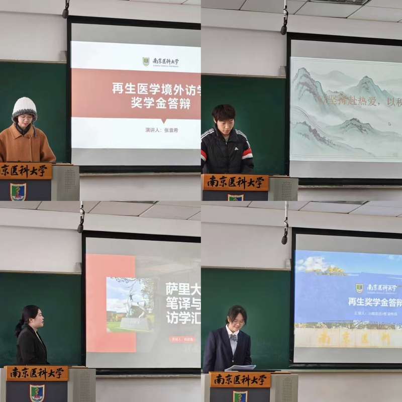 冬意渐浓,学风正盛,奋斗的激情在校园中持续涌动。为鼓励学生勤学善思、笃行致远,近日学院顺利组织中国再生医学奖学金答辩会。党总支书记徐霞、副书记副院长苏益民、副院长周思源、组织员徐晔星、学工办主任程青曼、25级英语专业兼职班主任吴文博与荣正浩共同参与活动,活动由学工办主任程青曼主持。