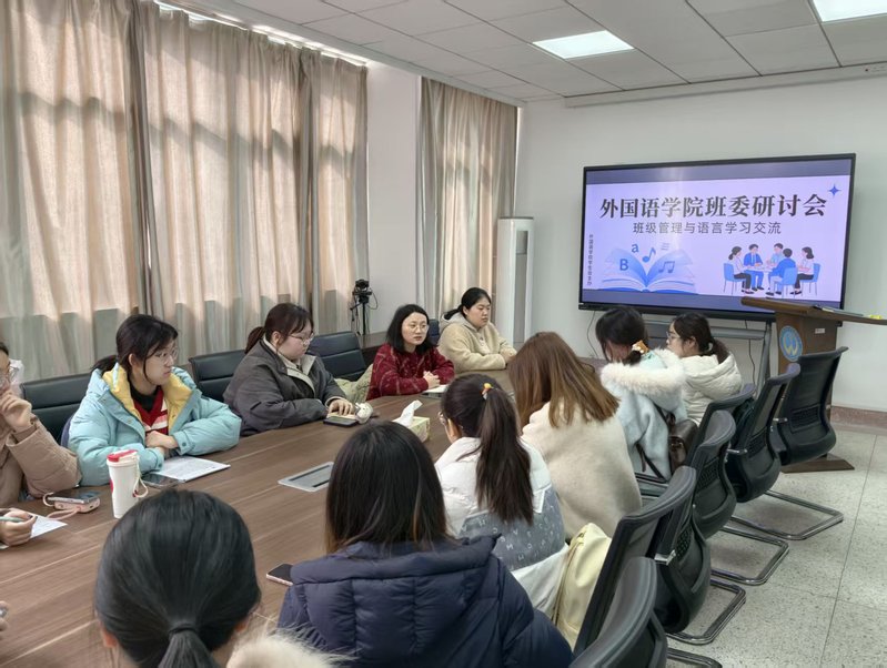 近日,外国语学院组织3场学情班情调研座谈会,学院副书记副院长苏益民、学工办主任程青曼及全体班委、团学组织学生骨干参加会议。