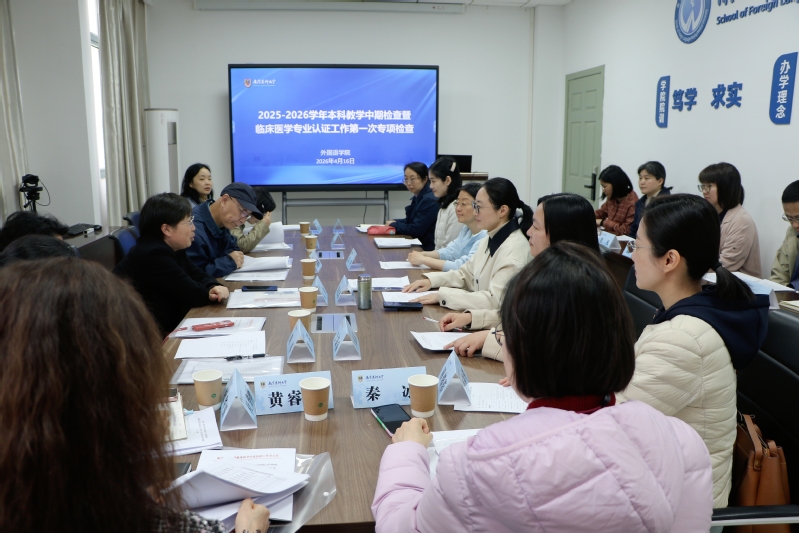 为进一步规范教学管理,深化教育教学改革,提升人才培养质量,4月16日下午,学校专项检查组莅临外国语学院开展2025-2026学年本科教学中期检查。教务处副处长袁栎主持检查工作,校督导王锦帆教授、胡琴教授、杨俭教授,马院郭玉宇副院长、教研办杜华丽主任,教师发展中心黄睿彦主任,教学评估中心秦冰老师组成检查组。我院周思源副院长、各基层教学组织负责人、院督导、教研办主任参加迎查。